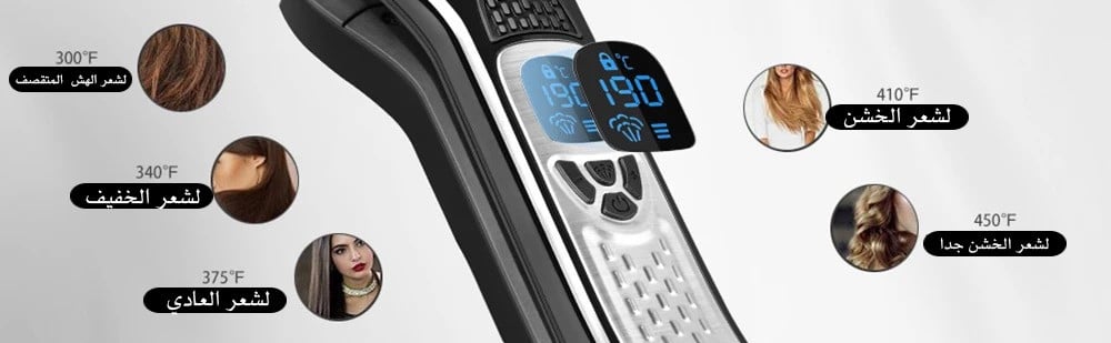 2- مطلي بالتورمالين وأسنان المشط مصنوعة من التيتانيوم وتقنية PTC لحماية الشعر من التلف بسبب تأثير الحرارة العالية بعكس السيراميك والحديد ويحارب نفشة الشعر